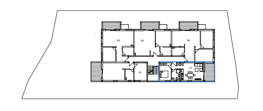 Stan 4, ukupne površine 48,80 m2, smješten na prvom katu stambeno poslovne zgrade.